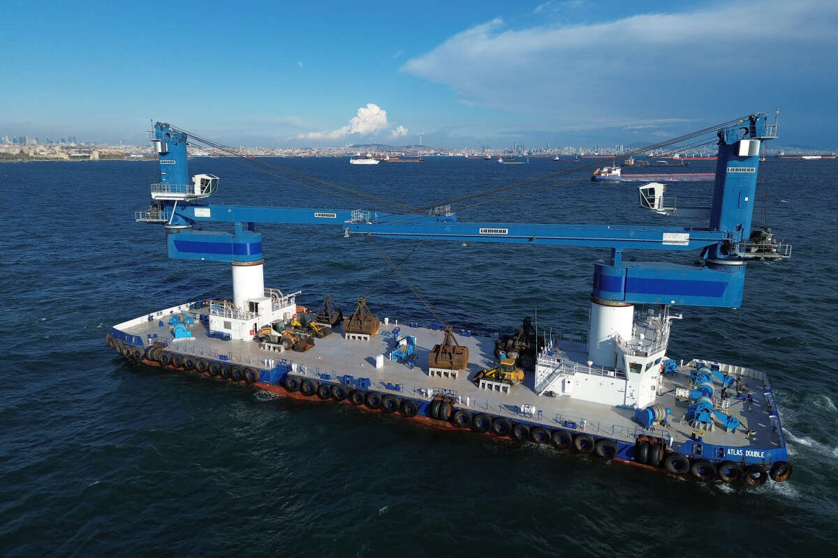 Sınıfında dünyada tek olma özelliği taşıyan üzerinde iki adet dev vinç bulunan Atlas Double isimli gemi Ukrayna’dan İstanbul’a geldi. İstanbul Zeytinburnu açıklarında demirleyen gemi havadan çekilen görüntüsüyle büyüklüğü gözler önüne serildi.