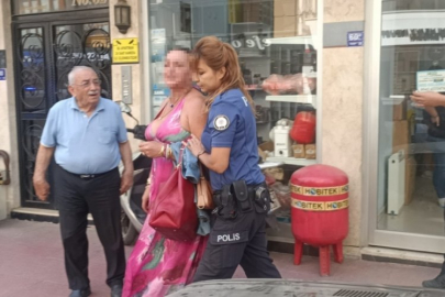 Aydın'ın Efeler ilçesindeki bir eczanenin rafından iddiaya göre krem ve ilaçları alıp ücretini ödemeyen, eczacı kalfasını da bıçakla tehdit eden kadın, yakalanınca polise zorluk çıkarıp, kendisini görüntüleyen gazetecilere de küfretti.