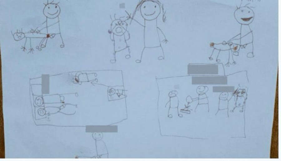 Küçük kız ve ağabeyi istismarı deftere yaptıkları çizimlerle de anlatmaya çalışmış, bu resimler de soruşturma dosyasına girmişti.