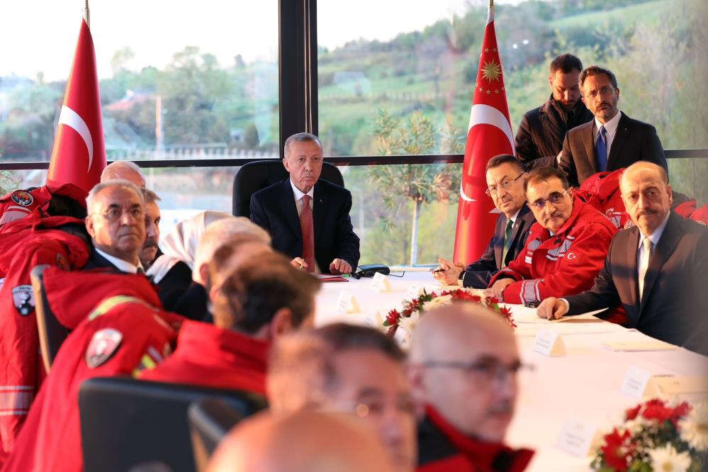 Cumhurbaşkanı Recep Tayyip Erdoğan tören öncesi Filyos Limanı'na kurulan kara işleme tesislerini havadan inceledi. Erdoğan, ardından seyir terasında toplantı yaparak çalışmalar hakkında yakından bilgi aldı.