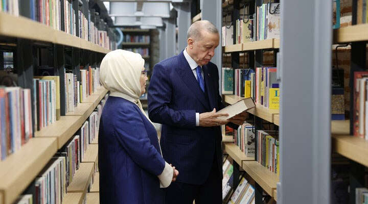 Cumhurbaşkanı Erdoğan açılış öncesi eşi Emine Erdoğan ile birlikte Rami Kütüphanesi’ni gezdi.
