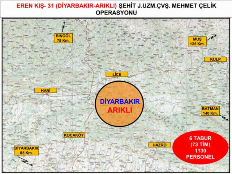 Bu kapsamda, Diyarbakır’da Eren Kış-31 (Diyarbakır-Arıklı) Jandarma Uzman Çavuş Mehmet Çelik operasyonu başlatıldı.
