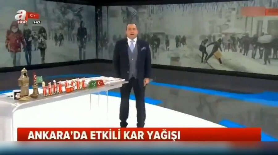 A Haber sunucusu Erkan Tan'ın, Ankara'da yağan karla alakalı bir haberi 'zıplayarak' sundu. Tan'ın haberi sunma şekli ise kısa sürede sosyal medyada gündem oldu.