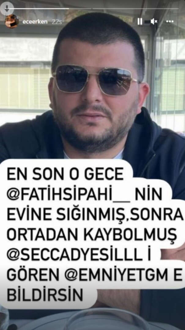 Ece Erken kişisel sosyal medya hesabından yaptığı paylaşımda, Drej Ali olarak bilinen Ali Yasak'ın kendi ismini taşıyan yeğeni Ali Yasak ve Kadir Yasak'ın yakalanmasının ardından katil zanlısı olarak aranan Seccad Yeşil ve Serkan Dakman'ın bulunması için çağrı yapmıştı. Ece Erken Seccad Yeşil'in cinayet gecesi Fatih Sipahi'nin evinde kaldığını belirttiği paylaşımının ardından Fatih Sipahi'den çok konuşulacak bir dizi paylaşımla yanıt geldi.