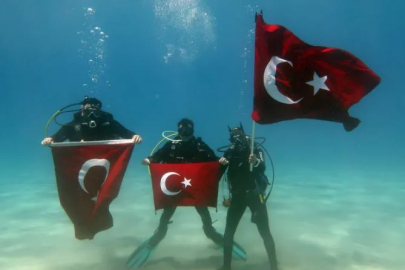 Fethiye'de dalgıçlar 19 Mayıs'ı deniz altında kutladı