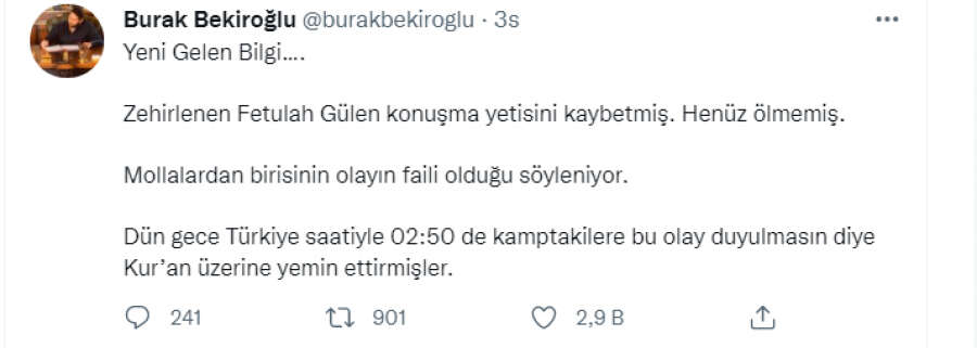 Fethullah Gülen dün gece zehirlendi iddiası