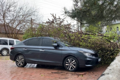 Fırtına etkili oldu: Ağaç, araçların üzerine devrildi