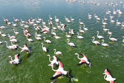 Flamingolar pembe kanatlarıyla görsel şölen sundu!