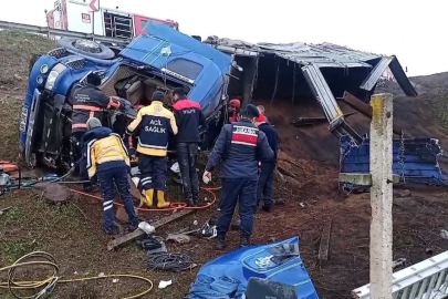 Freni boşalan tır şarampole uçtu