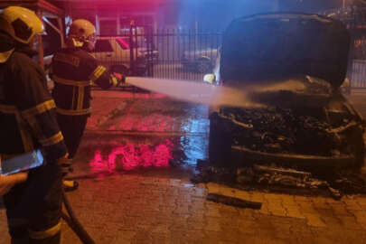 Adana'nın Kozan ilçesinde oto galeri önünde park halindeki bir otomobil kundaklandı. İtfaiye ekipleri yangını söndürürken, otomobilin motor kısmı küle döndü.