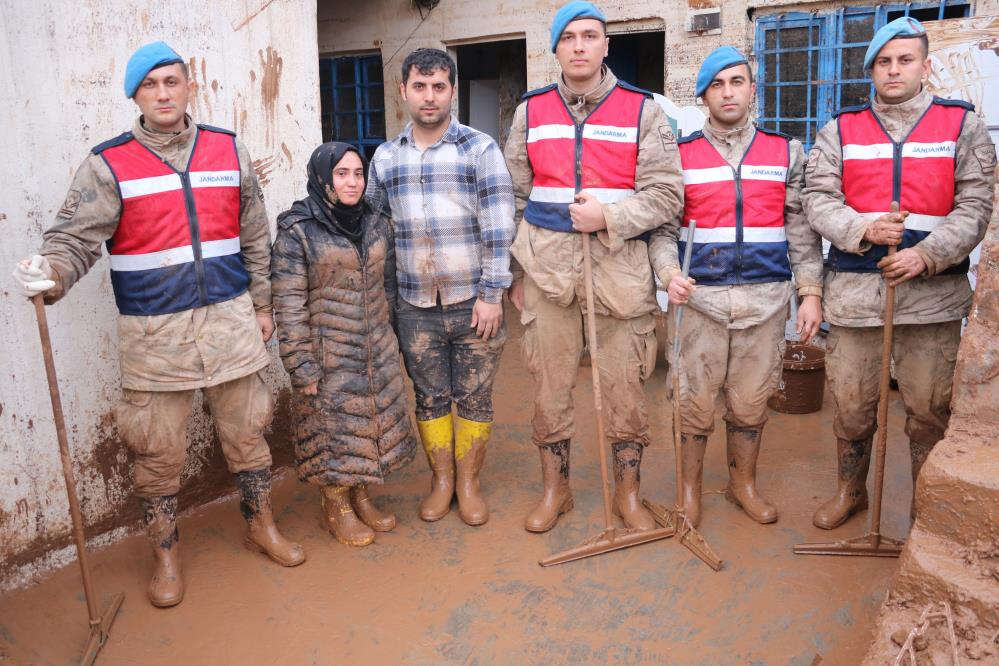 Jandarma ekipleri, genç kızın evini temizleyerek çeyizinden sağlam kalanları çamur içerisinden çıkartmaya çalıştı. Bayan jandarmanın da sarılıp teselli etmeye çalıştığı genç kız, bayramdan sonra nişanlısıyla evlenmeyi planladıklarını söyledi. Evlilik planlarının suya düştüğünü söyleyen genç kız, kendisine destek olan jandarma ekiplerine teşekkür etti.