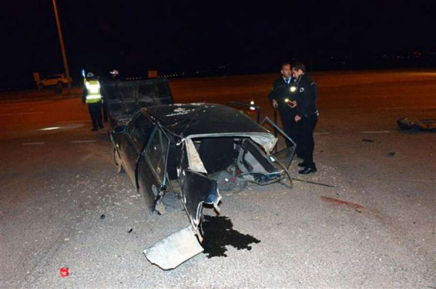 Çarpışmanın etkisiyle sürücü Çetinkaya'nın otomobili ikiye ayrıldı parçaları ise çevreye dağıldı.
