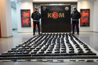 Isparta Emniyet Müdürlüğü ekipleri, Eğirdir Cumhuriyet Başsavcılığı'nın yürüttüğü soruşturma kapsamında durdurdukları iki araçta yaptıkları aramada 230 ruhsatsız tabanca, 220 şarjör, 250 namlu ve 250 fişek yatağı ele geçirdi. Olayla ilgili N.G., R.B., A.B. ve F.A. isimli şüpheliler gözaltına alındı. Şüpheliler, emniyetteki ifadelerinin ardından çıkarıldıkları mahkemece tutuklanarak cezaevine gönderildi.
