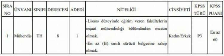 Kastamonu ili Daday Belediye Başkanlığı bünyesinde yapılacak olan sözleşmeli personel alımı ilanında, mühendis alımı yapılacağı yayımlandı. Ayrıca adaylardan en az 60 KPSS puanı istendiği açıklandı.