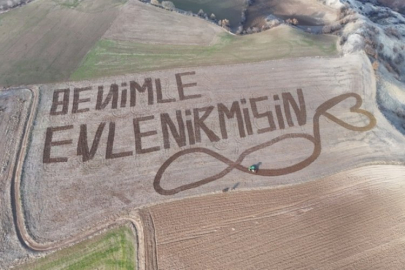 Çorum'un İskilip ilçesinde bir çiftçi, traktörle tarlaya "Benimle evlenir misin?" yazarak kız arkadaşına evlilik teklifi etti.