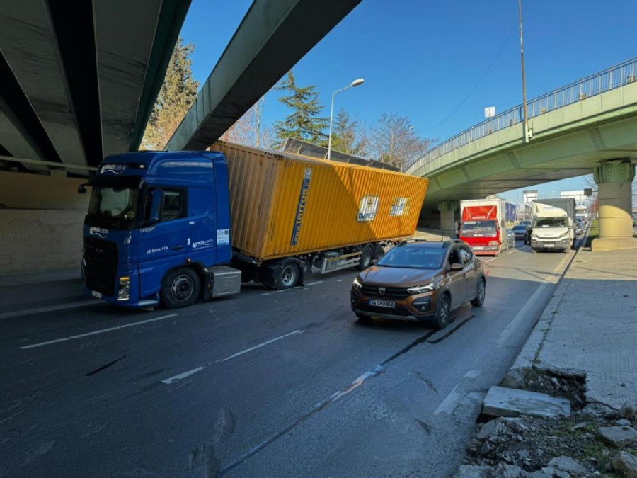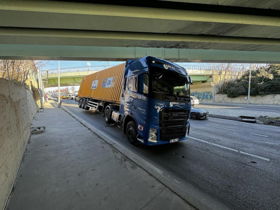 İstanbul'da tır üst geçide takıldı: 3 araç kaza yaptı