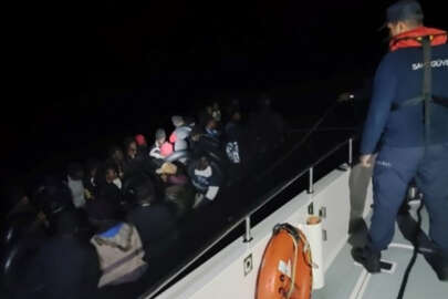 İzmir'in Çeşme ilçesi açıklarında lastik botta 45 düzensiz göçmen yakalandı.