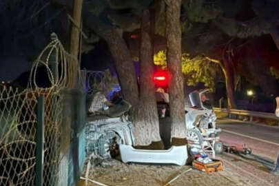İzmir'de bir araç önce otobüse sonra ağaca çarptı!
