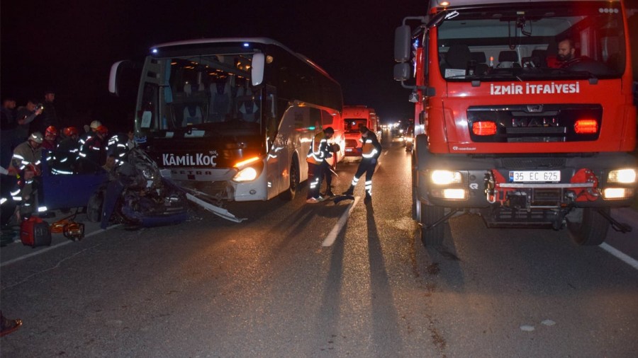 İzmir'de yolcu otobüsü ile otomobil çarpıştı: 1 ölü, 4 yaralı