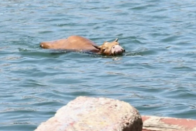 Yaklaşık 20 dakika suda kalan kurbanlık, karaya çıkıp bir balıkçı kulübesine sığındı.