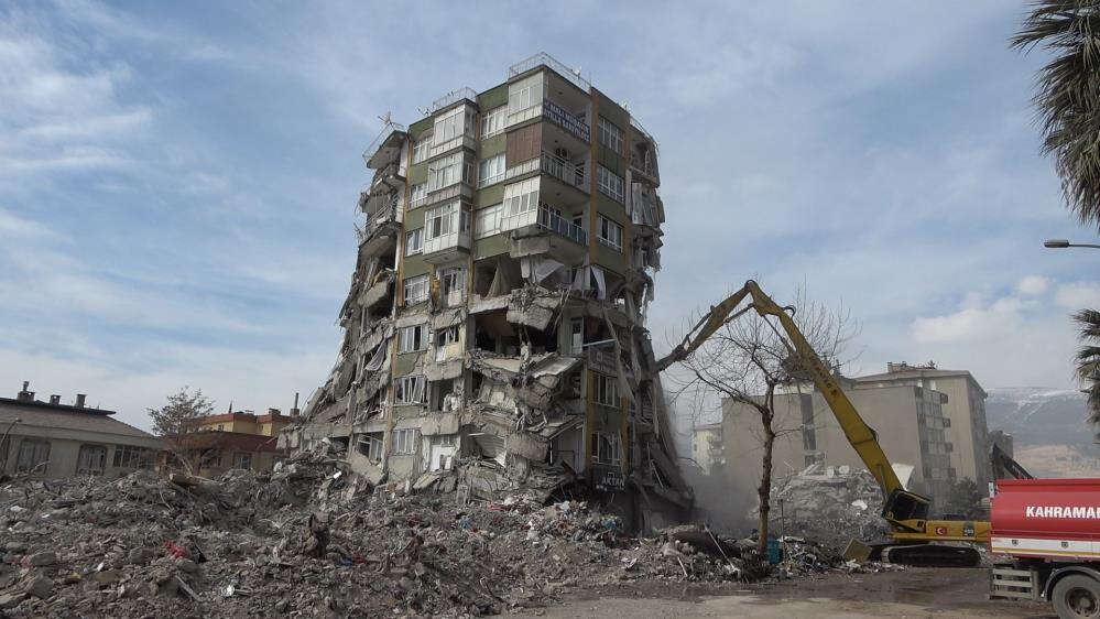 Kahramanmaraş’ta ağır hasarlı binaların yıkımı sürüyor