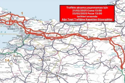 Karayolları Genel Müdürlüğü, 21 Şubat Cuma günü saat 13.00'ten, 23 Şubat Pazar günü saat 13.00'e kadar iki boyunca ağır taşıtların D-100, D-750 devlet yolları ile TEM ve Kuzey Marmara Otoyolları'na girişlerini yasakladı.