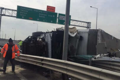 Kocaeli'de karşı şeride geçip devrilen TIR'ın şoförü hayatını kaybetti