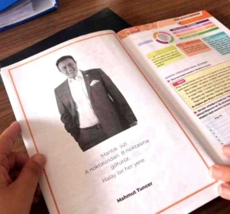 Mahmut Tuncer'in tam sayfa fotoğrafı olduğu Mantık kitabında, "Mantık sizi A noktasından B noktasına götürür. Halay ise her yere" cümlesi yer aldı.