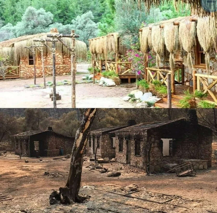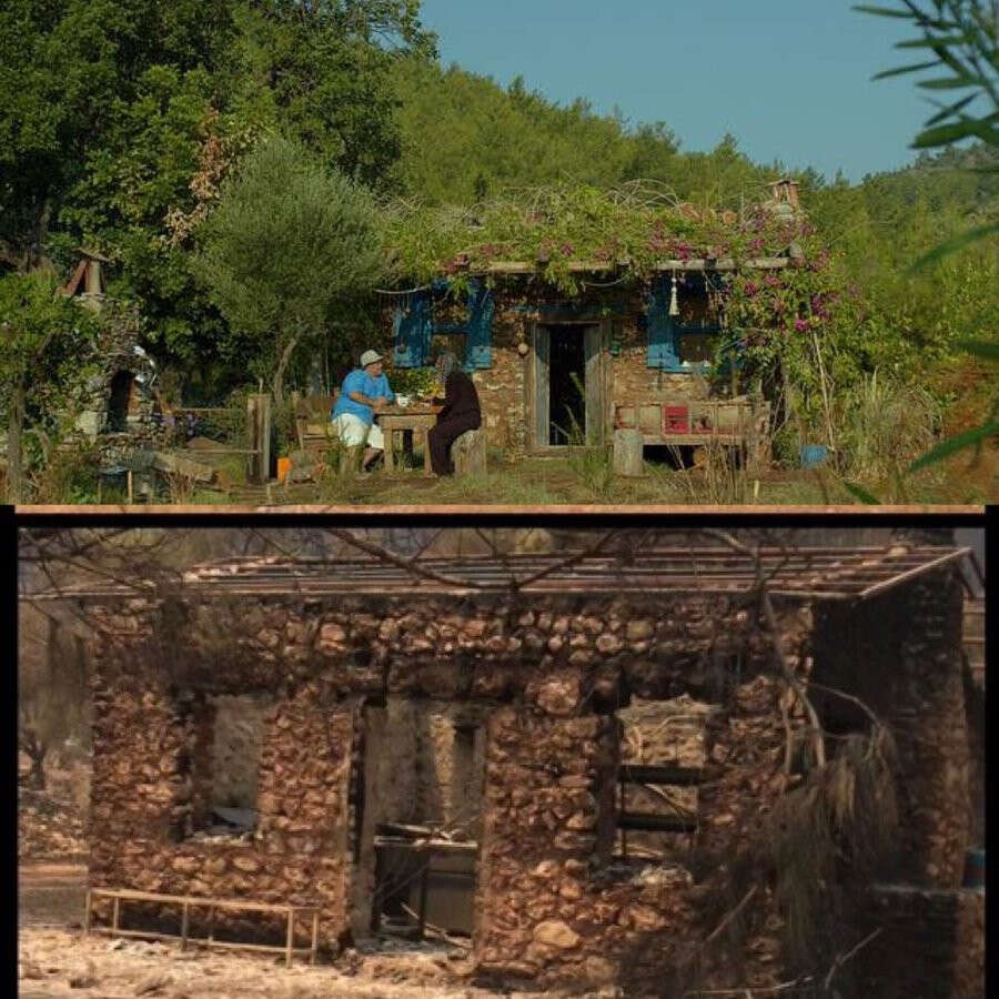 Türkiye'de devam eden yangınlar sonrası Mandıra Filozofu filminin çekildiği Çökertme Koyu küle döndü.