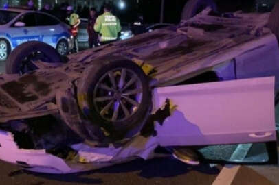 Üsküdar'da sürücüsünün direksiyon hakimiyetini kaybettiği otomobil aynı istikamette giden otomobile çarparak takla attı.