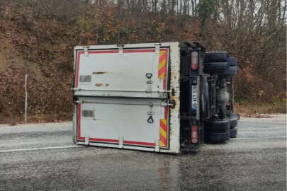 Pazaryeri-Bursa kara yolunun Gümüşdere köyü Ahıdağı mevkisinde seyreden Onurcan A. (25) İdaresindeki 26 ACY 536 plakalı tır, virajda sürücüsünün kontrolünden çıkarak devrildi.