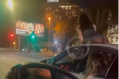 İstanbul Beşiktaş'ta kaydedildiği belirtilen yeni bir görüntüde, bir kadının aracın sunroof'undan çıkarak twerk yaptığı anlar görülüyor. Hareket halindeki aracın üzerinde twerk yapan kadını, trafikte olan bir vatandaş kaydetti.