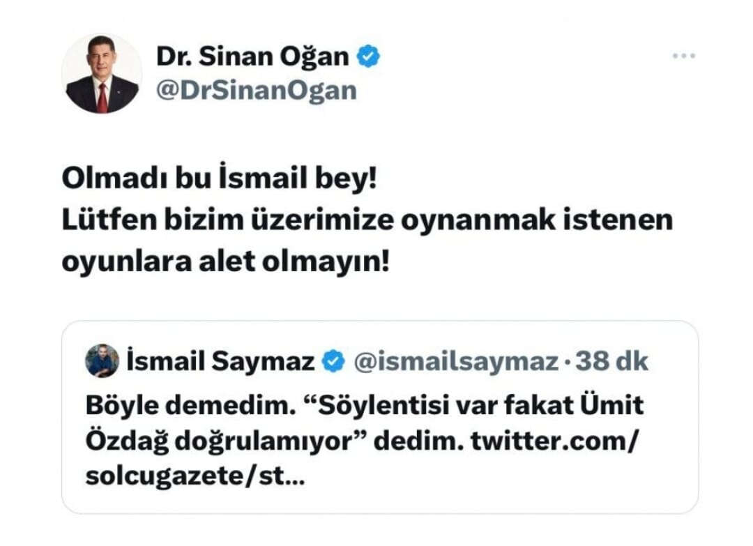 Sinan Oğan'dan gazeteci İsmail Saymaz'a tepki