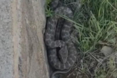 Türkiye'de yaşayan en zehirli yılan türlerinden biri olan engerek yılanı, Elazığ'da görüntülendi.