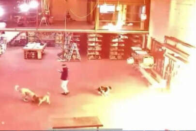 Maltepe'de bir atölyede ısınmak için yakılan sobaya tiner döken Z.Ç. patlama sonrası ağır yaralandı. O anlar güvenlik kamerasına yansıdı.