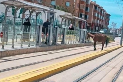 Görüntülerde; atın rayların üzerinde tramvay durağının yanında dolaştığı ve duraktaki yolcuların şaşkın bakışları eşliğinde rayların üzerinde ilerlemeye devam ettiği görülüyor.