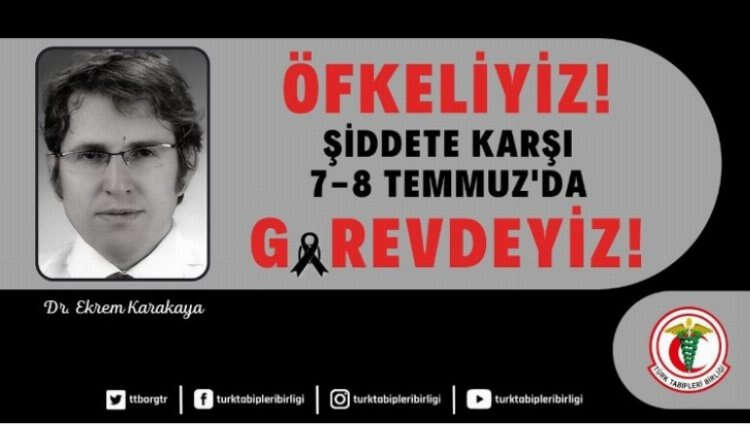 Türk Tabipleri Birliği sosyal medya hesabından yaptığı açıklamada, ''Dr. EkremKarakaya Görevi Başında Katledildi! Öfkeliyiz! Şiddete karşı 7-8 Temmuz'da G(ö)REV'deyiz'' ifadelerini kullandı.