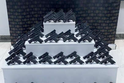 Otomobilde yapılan aramada, 100 ruhsatsız tabanca ve bu tabancalara ait şarjörler ele geçirildi.
