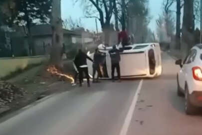 Yalova'da ağaca çarpan hafif ticari araç devrildi