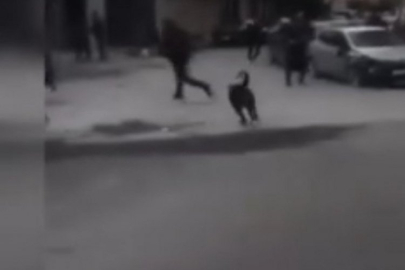 Vatandaşlardan biri, köpeğin kuyruğundan tutarak çekmeye çalışırken, diğeri de bir kürekle köpeği uzaklaştırmaya uğraştı. Yerde yatan yaralı kişiden uzaklaşan köpek, bu kez etraftaki diğer insanlara da saldırmaya devam etti.