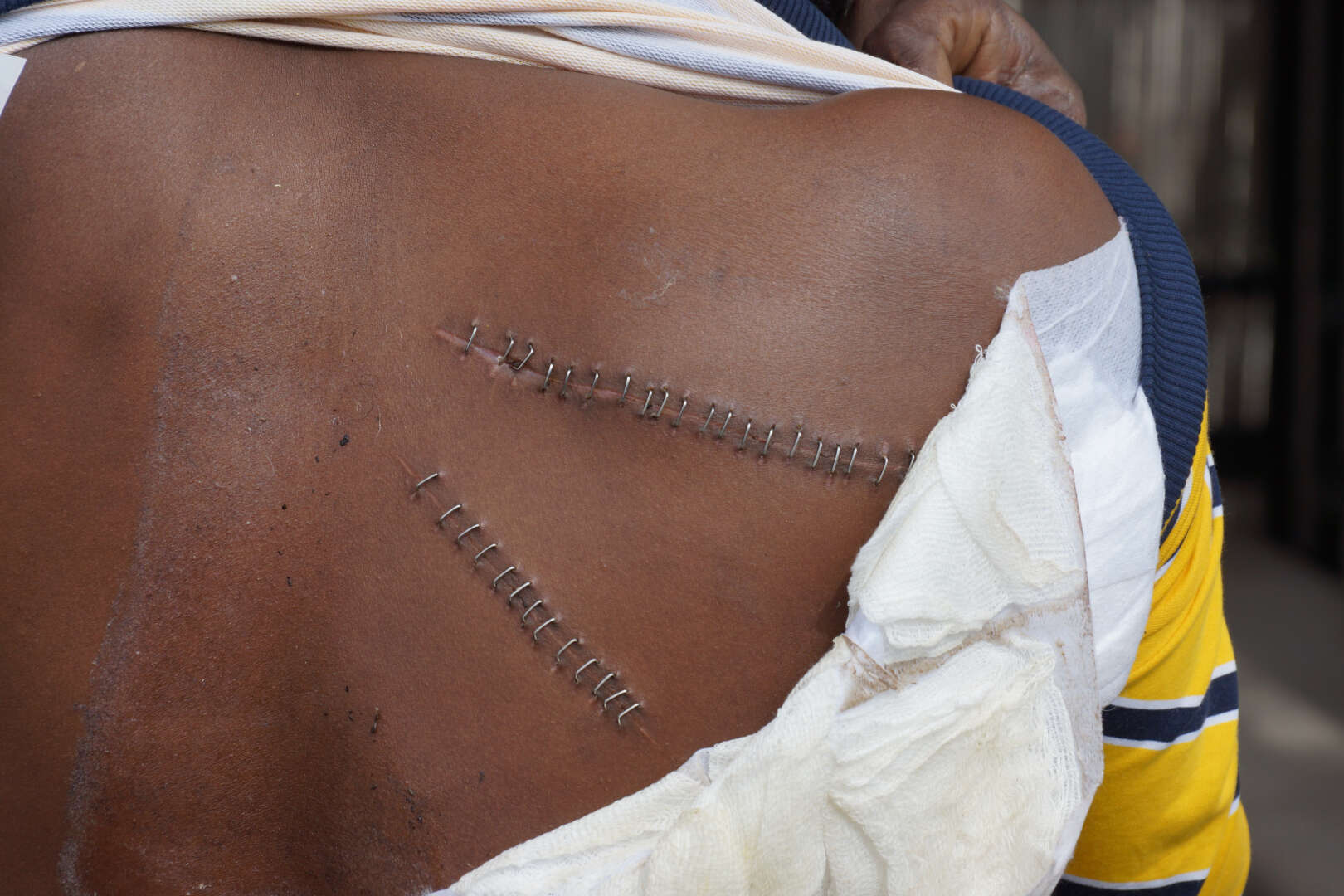 Sırtında 30 ve 20 santim uzunluğunda 2 büyük bıçak yarası olan ve Kuşadası Devlet Hastanesi'ndeki tedavisinin ardından sırtına dikiş atılan Isaak, daha sonra diğer 34 göçmen ile birlikte Aydın İl Göç İdaresi Müdürlüğü Geri Gönderme Merkezi'ne getirildi.