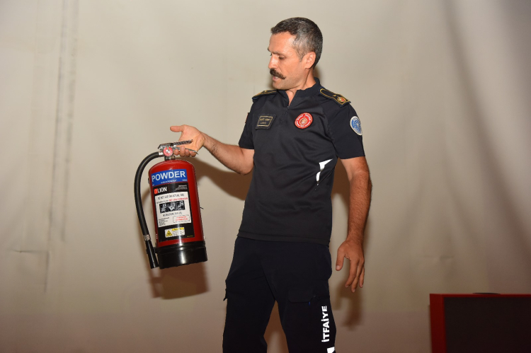 Yıldırım Belediyesi Afet İşleri Müdürlüğü, belediye çalışanları ve özel güvenlik personeline yönelik kapsamlı yangınla mücadele ve acil durumlara hazırlık eğitimi veriyor.