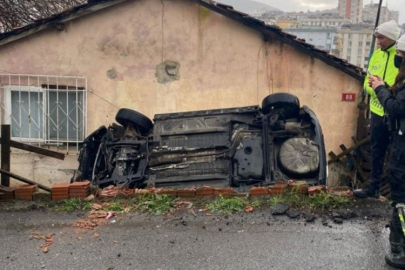 Yokuş aşağıya inen otomobil evin bahçesine uçtu