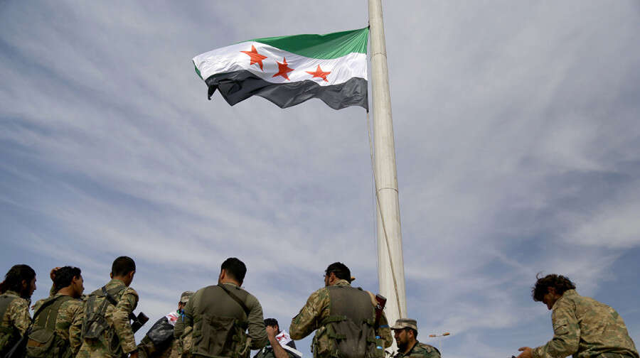 Terör örgütü YPG/PKK unsurlarından temizlenen Tel Abyad'da bir direkte bulunan terör örgütünü simgeleyen bez parçasının yerine Suriye Milli Ordusu (SMO) bayrağı asıldı.