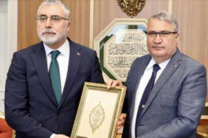 Çalışma ve Sosyal Güvenlik Bakanı Vedat Işıkhan'ı makamında ziyaret eden Yunusemre Belediye Başkanı Dr. Mehmet Çerçi, Bakan Işıkhan'a belediyenin hizmetleri hakkında bilgi verdi.