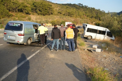 Zeytin işçilerini taşıyan minibüse ticari araç çarptı: 15 yaralı