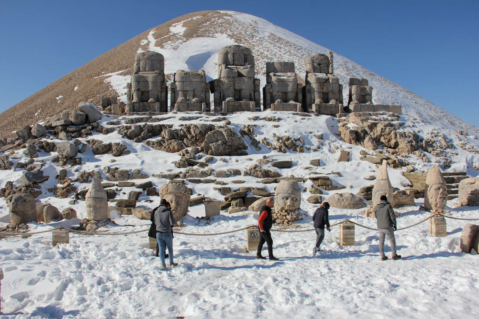 Devasa heykellerin bulunduğu ve 2 bin 206 metre yükseklikte ki Nemrut Dağı bu yıl beyaza bürünüp, kış uykusuna yatamadı. Bugüne kadar Nemrut Dağı’nda böyle bir durum yaşanmadığı biliniyor. Kar yağışı nedeniyle her yıl Kasım ayı sonunda başlayan ve sonraki yılın Nisan ayı başına kadar turizm sezonu yaşayan Nemrut Dağı, kuraklıktan etkilendi.