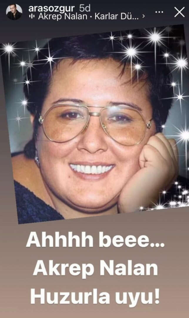 Aras, Akrep Nalan'ın nefes darlığı nedeniyle Bodrum'da hayatını kaybettiğini açıkladı.