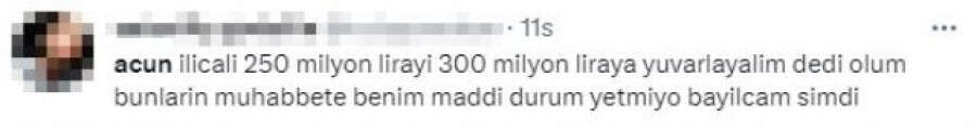 Ünlü televizyoncu Acun Ilıcalı'nın o anları ise kısa sürede Twitter'da TT oldu. Ünlü isim için "Acun'a düğünde takı töreni sundurmak lazım" ve "Acun tam bir kapalı çarşı esnafı gibi iyi pazarlık yapıyor" yorumları yapıldı. Öte yandan Acun Ilıcalı gecede kızları ve kendi adına 5 milyon TL'lik bağış yaptı.