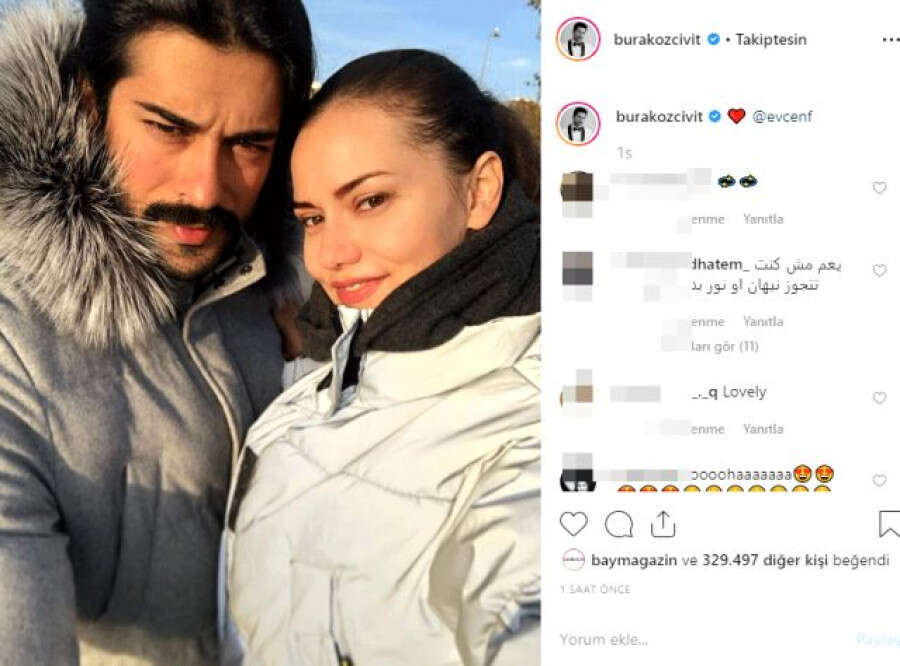 Uzun süredir birlikte fotoğraf paylaşmayan ünlü çift hayranlarına sürpriz yaptı. Eşi Fahriye Evcen'le olan samimi fotoğrafını kalp emojisiyle Instagram hesabından paylaşan Özçivit'e beğeni yağdı. Ünlü çiftin takipçileri, "Soğukta aşk başkadır" yorumunda bulundu.